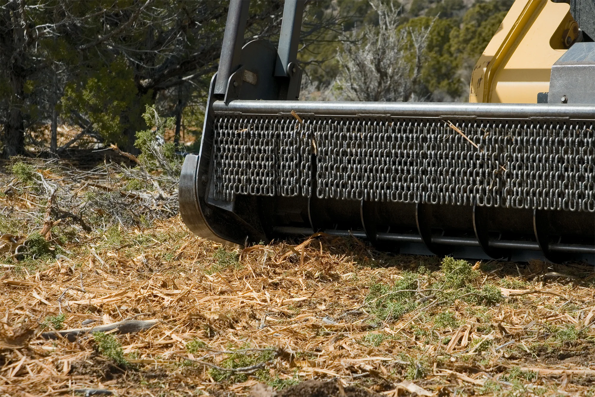 Forestry mulching grinds vegetation in place, leaving nutrient-rich mulch that prevents erosion, retains soil moisture, and naturally decomposes to enrich the land without burning or hauling debris off-site.